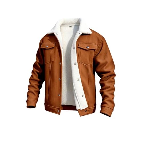 GINGTTO Mens Corduroy Jacket Fleece Lined Trucker Sherpa Winter Coat Brown Large